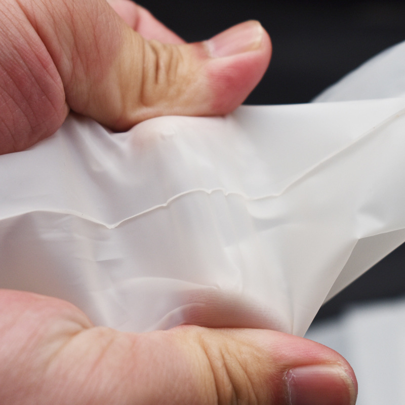 This film is semi transparent off white in color. It is relatively soft, but has a more moisturizing feel, like silk. After use, it can be buried in soil or composted in an environment with microorganisms for 3 months to completely degrade into carbon dioxide and water, becoming organic fertilizer and returning to nature.